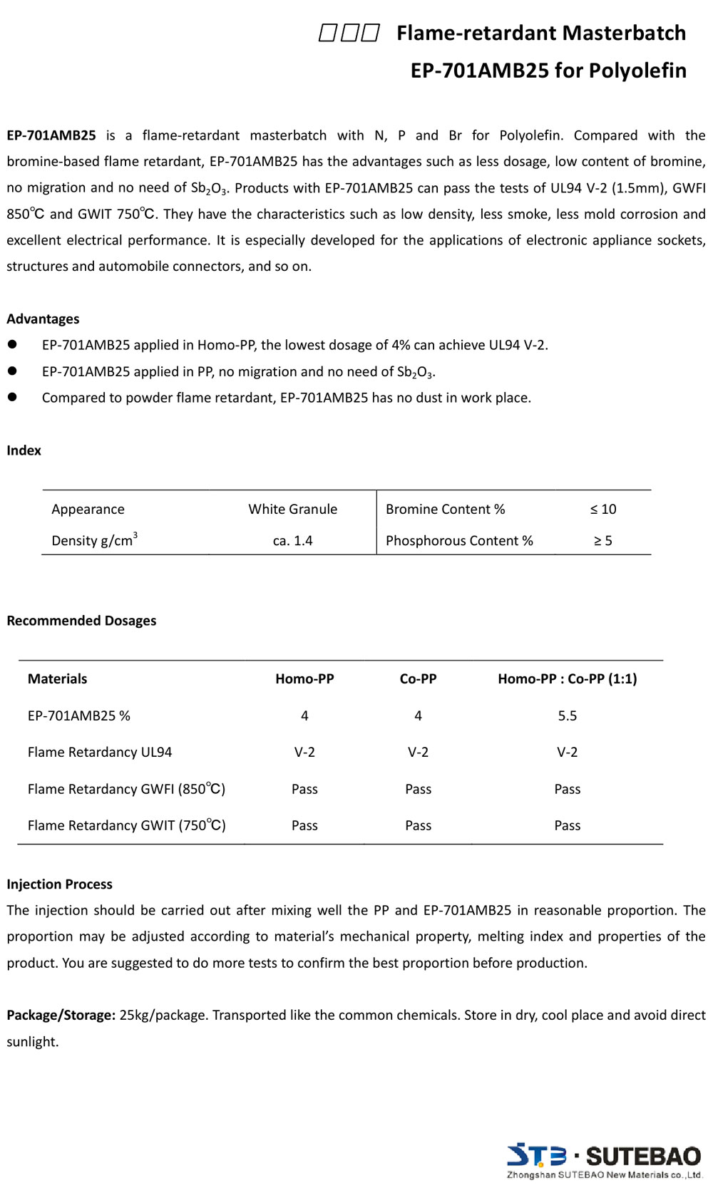 Product Name:Flame-retardant Masterbatch EP-701AMB25 for Polyolefin