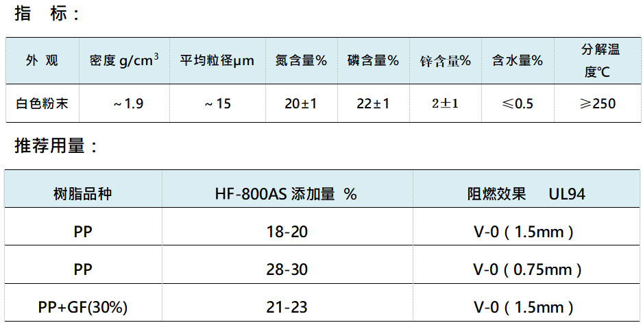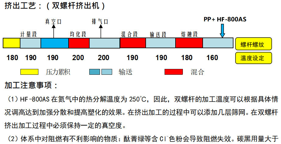 HF-800AS是一種以磷、氮為阻燃元素的無(wú)鹵環(huán)保阻燃劑,不受歐盟及其理事會(huì)通過(guò)的2002/95/EC號(hào)《關(guān)于在電氣電子設(shè)備中限制使用某些有害物質(zhì)指令》的限制。HF-800AS還具有阻燃制品密度小、發(fā)煙量低、模具腐蝕小的特點(diǎn)。