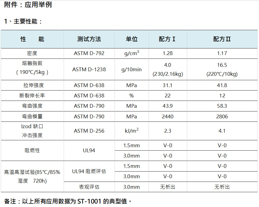 ST-1001是一款環(huán)保型硅系阻燃劑,對(duì)鹵系阻燃劑具有優(yōu)異的協(xié)效作用,并有一定的抑煙作用,完全符合歐盟的2002/95/EC號(hào)《關(guān)于在電氣電子設(shè)備中限制使用某些有害物質(zhì)指令》(即RoHS指令),及REACH法規(guī)等環(huán)保法規(guī)的要求。ST-1001主要用作三氧化二銻的替代物,用于PP、ABS、PBT、PVC等阻燃聚合物中時(shí),可以替代30~50%的三氧化二銻,能顯著降低阻燃聚合物的成本。ST-1001的PH值為中性,且具有極高的熱穩(wěn)定性、極低的水溶性和吸水性,在高溫加工中不變色不分解,不會(huì)水解析出,不會(huì)影響材料的電性能。